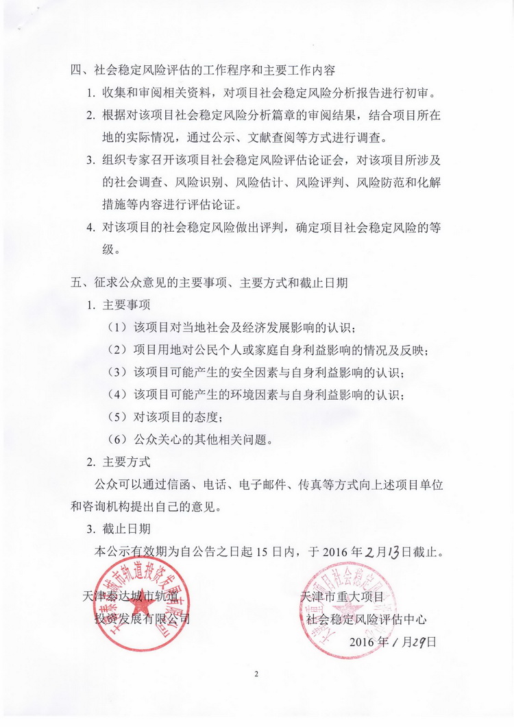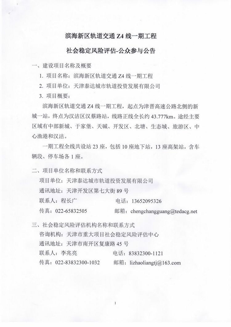 公眾參與公告:濱海新區(qū)軌道交通Z4線一期工程社會(huì)穩(wěn)定風(fēng)險(xiǎn)評估