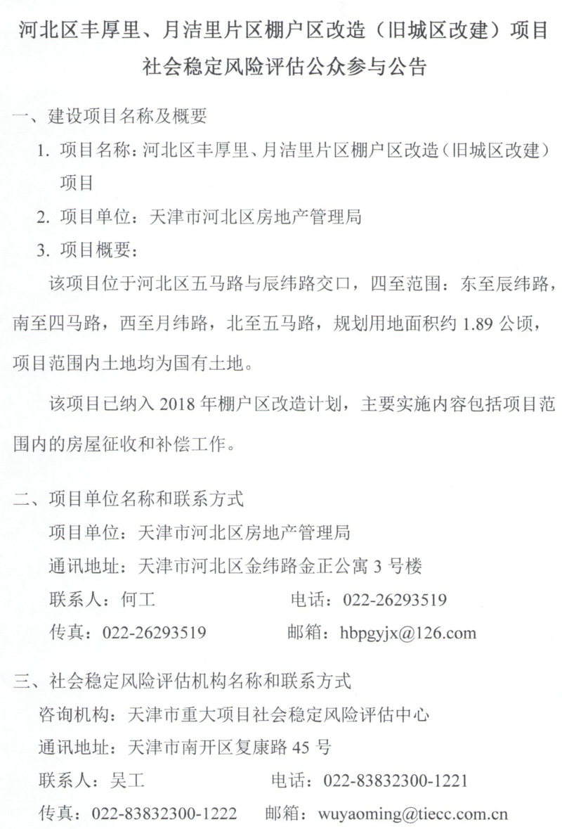 公眾參與公告:河北區(qū)豐厚里、月潔里片區(qū)棚戶區(qū)改造(舊城區(qū)改建)項(xiàng)目社穩(wěn)評(píng)估
