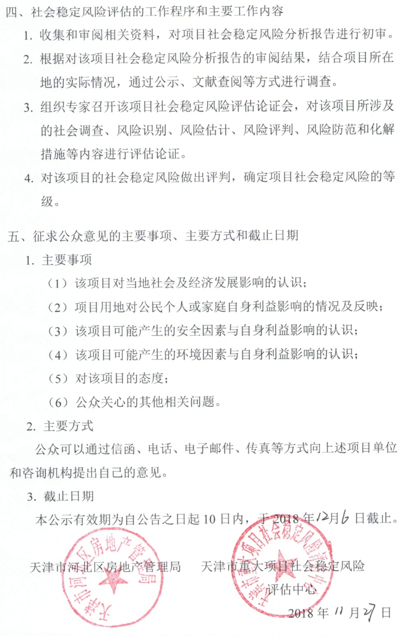 公眾參與公告:天津市濱海新區新城鎮棚戶區改造收尾項目西區還遷安置房工程社會穩定風險分析