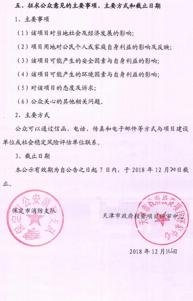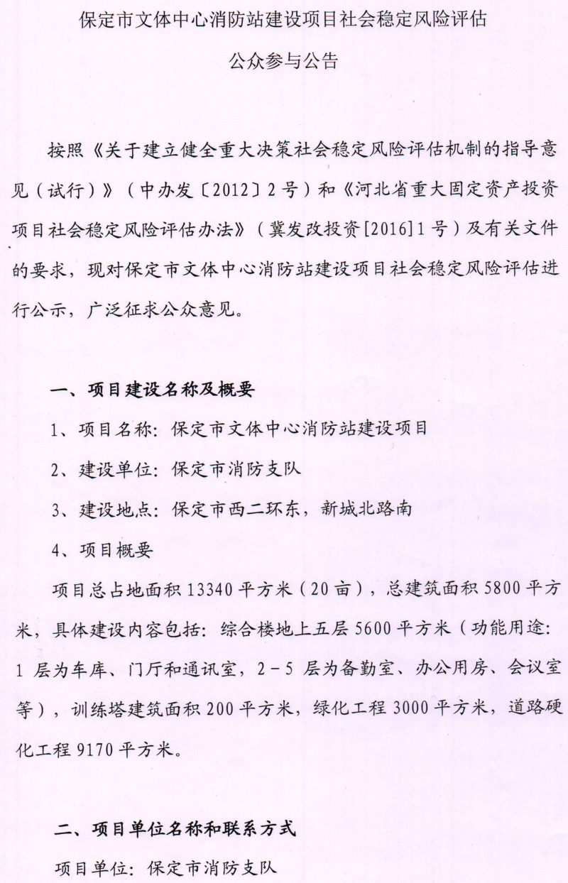 公眾參與公告:保定市文體中心消防站建設項目社會穩定風險評估