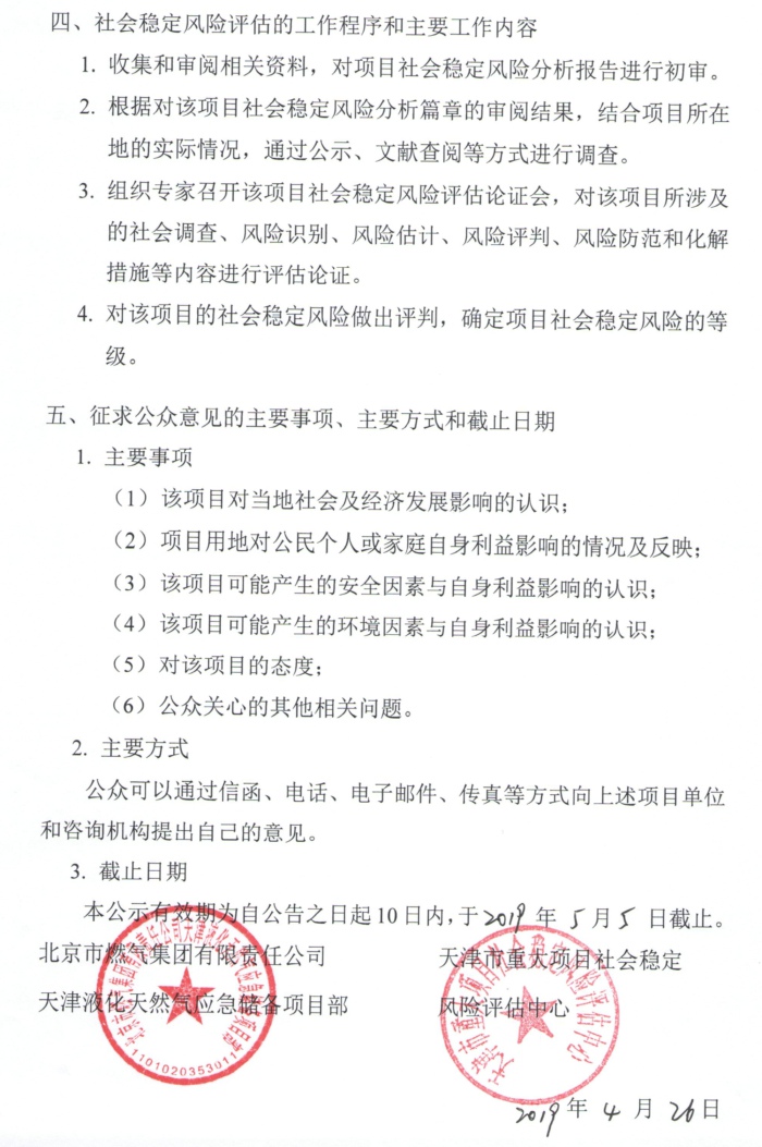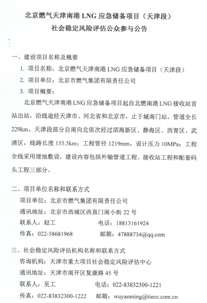 公眾參與公告:北京燃氣天津南港LNG應(yīng)急儲備項目(天津段)社會穩(wěn)定風(fēng)險評估