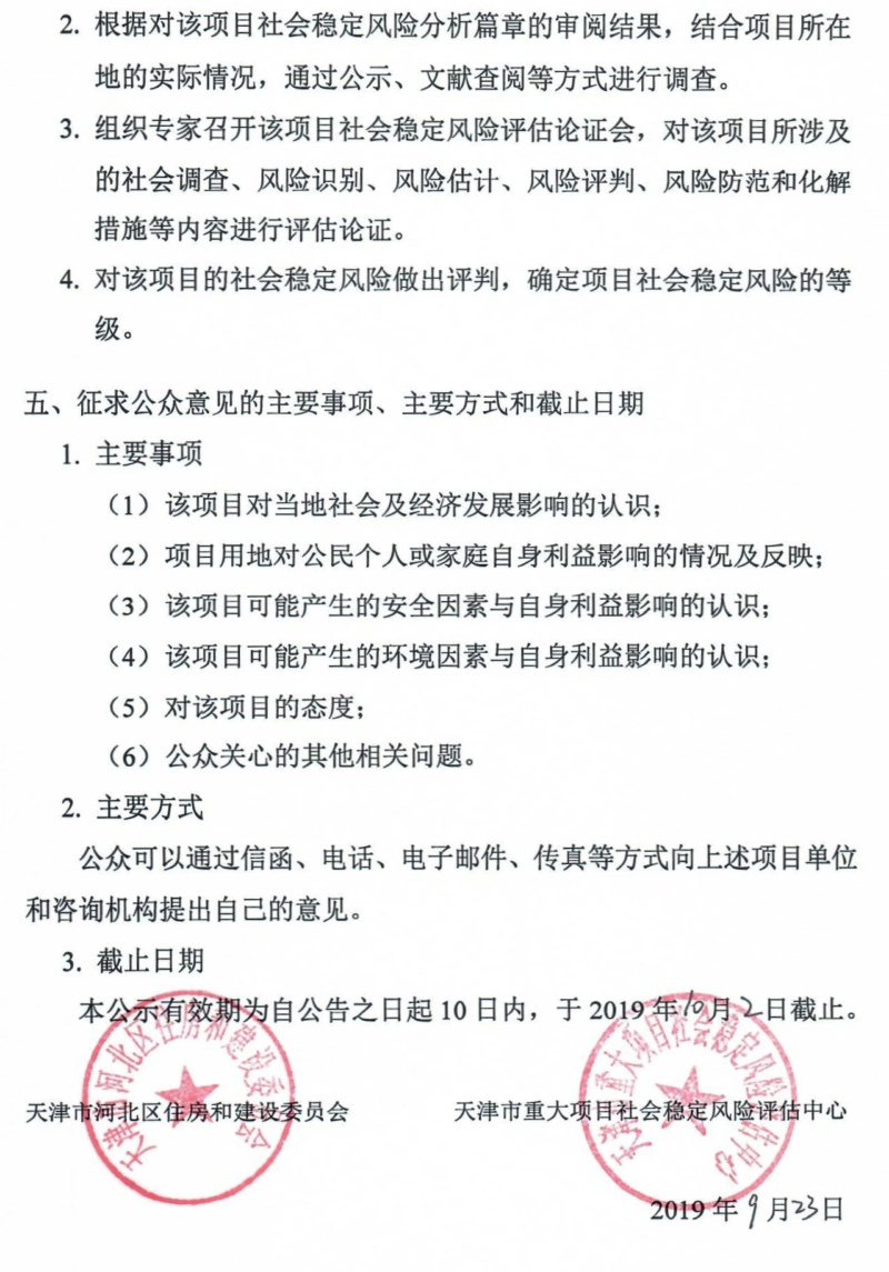 公眾參與公告:天津市濱海新區新城鎮棚戶區改造收尾項目西區還遷安置房工程社會穩定風險分析