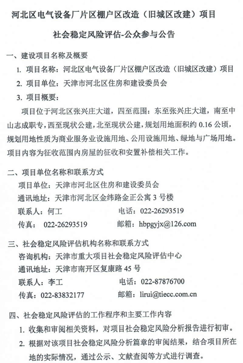 公眾參與公告:河北區(qū)電氣設(shè)備廠片區(qū)棚戶區(qū)改造(舊城區(qū)改建)項(xiàng)目社會(huì)穩(wěn)定風(fēng)險(xiǎn)評(píng)估