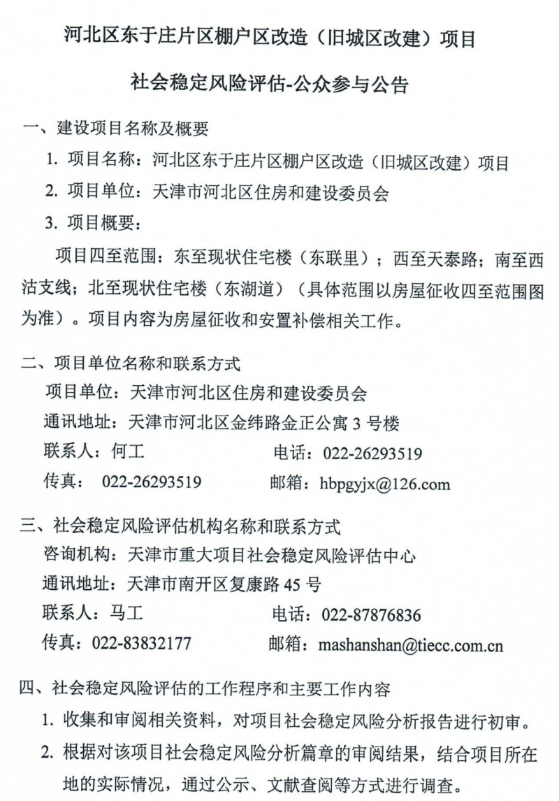 公眾參與公告:河北區東于莊片區棚戶區改造(舊城區改建)項目