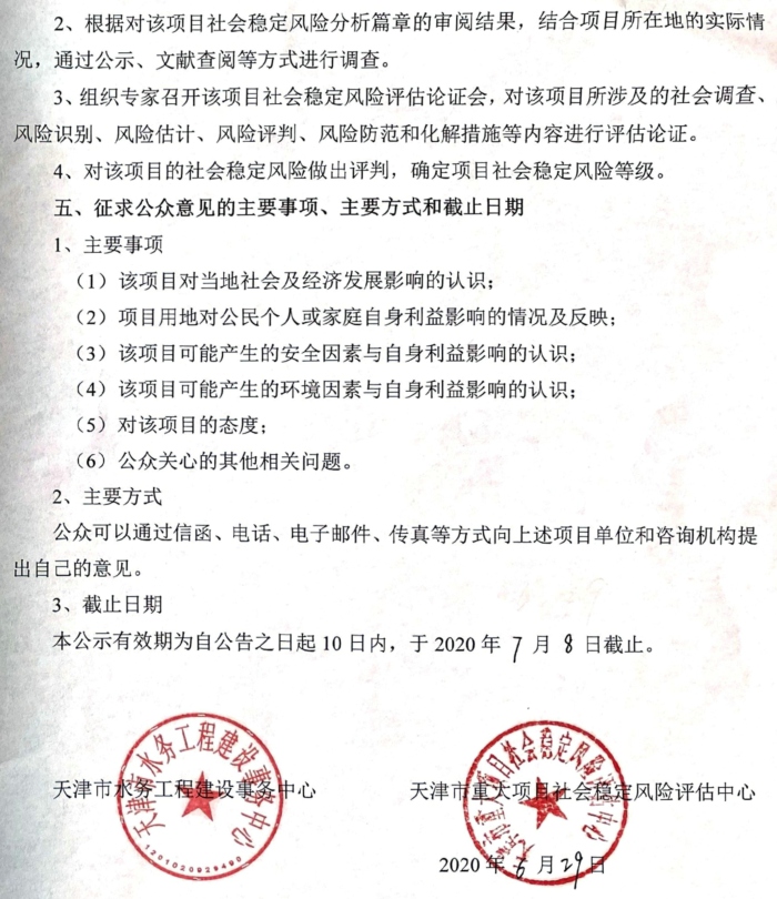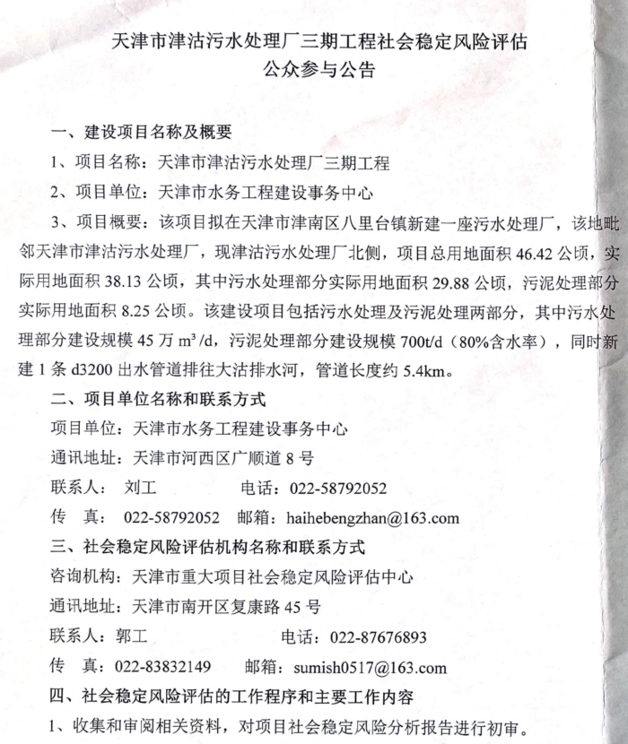 公眾參與公告:天津市津沽污水處理廠三期工程社會(huì)穩(wěn)定風(fēng)險(xiǎn)評(píng)估