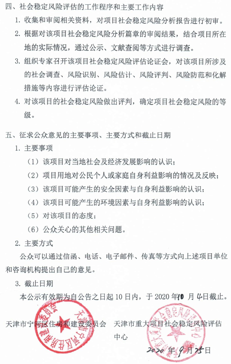 公眾參與公告:天津市濱海新區新城鎮棚戶區改造收尾項目西區還遷安置房工程社會穩定風險分析