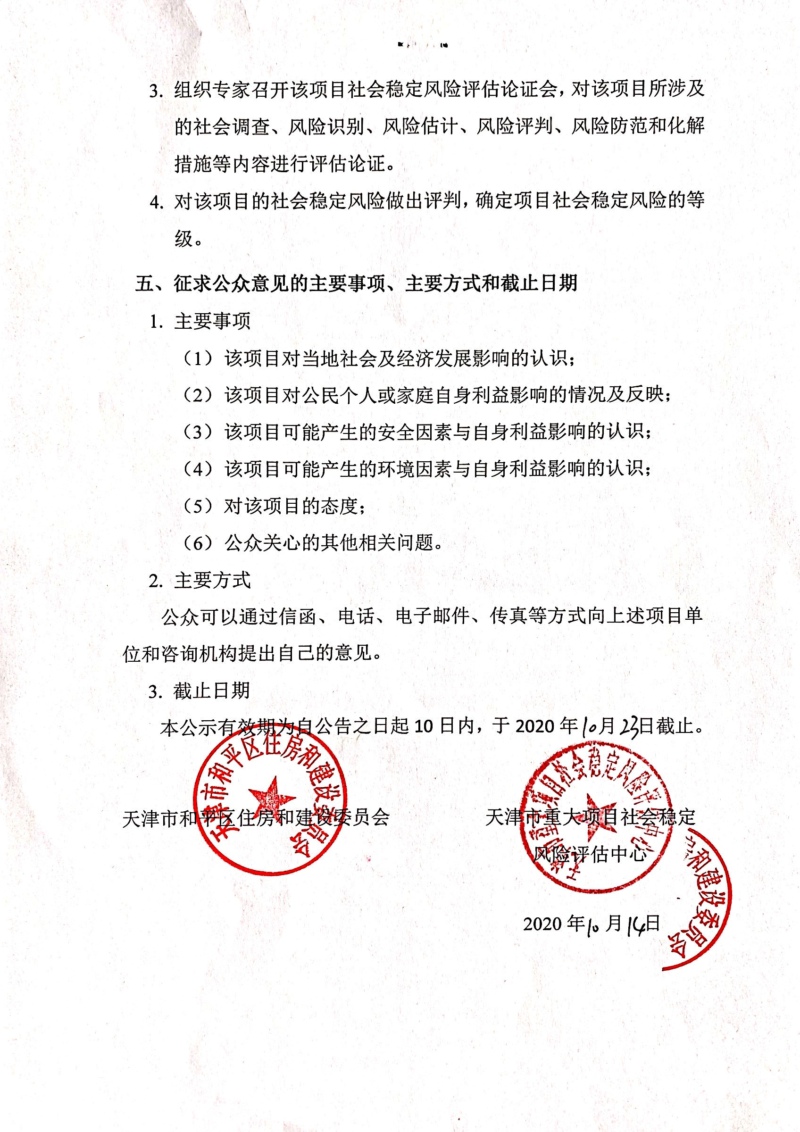 公眾參與公告:天津市濱海新區新城鎮棚戶區改造收尾項目西區還遷安置房工程社會穩定風險分析