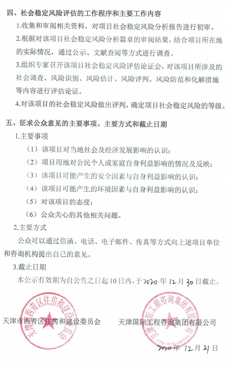 公眾參與公告:天津市濱海新區新城鎮棚戶區改造收尾項目西區還遷安置房工程社會穩定風險分析
