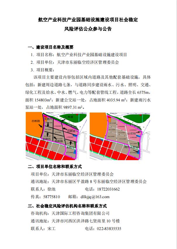 公眾參與公告:航空產業科技產業園基礎設施建設項目社會穩定風險評估
