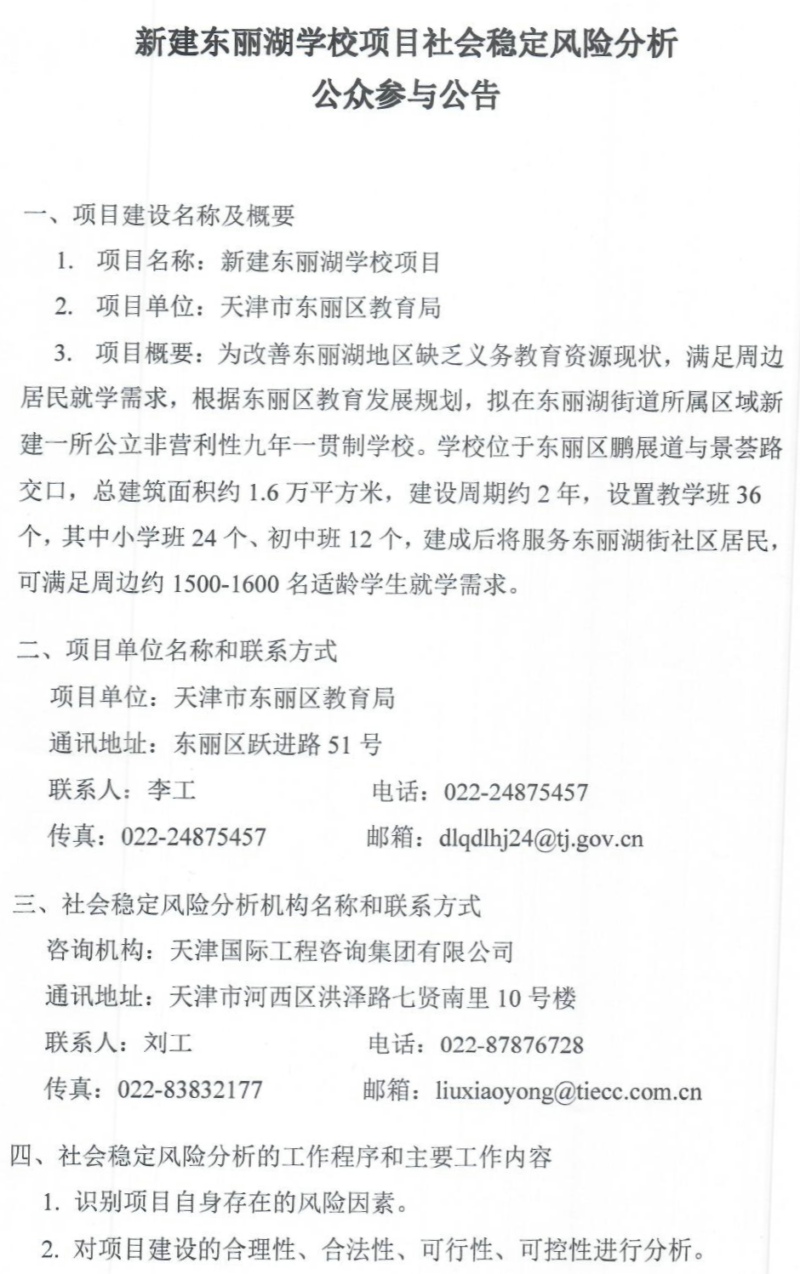 公眾參與公告:新建東麗湖學(xué)校項(xiàng)目社會(huì)穩(wěn)定風(fēng)險(xiǎn)分析