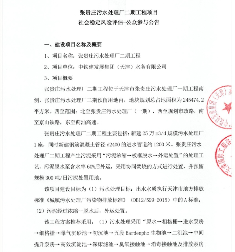 公眾參與公告:張貴莊污水處理廠二期工程項(xiàng)目社會(huì)穩(wěn)定風(fēng)險(xiǎn)評(píng)估