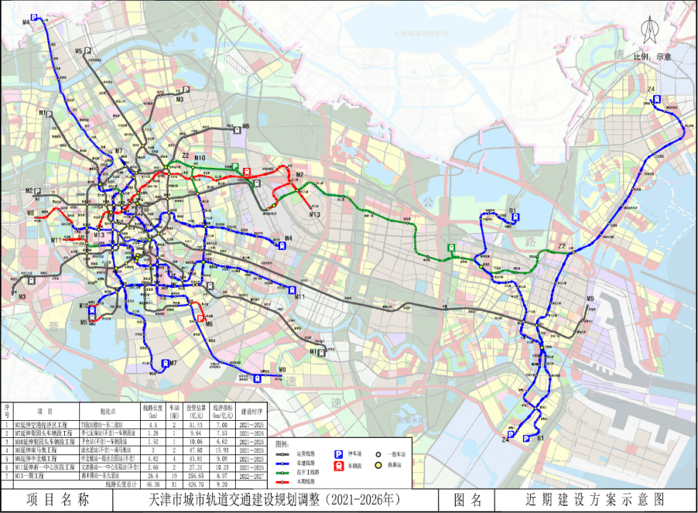 天津市城市軌道交通建設規劃調整近期建設方案示意圖
