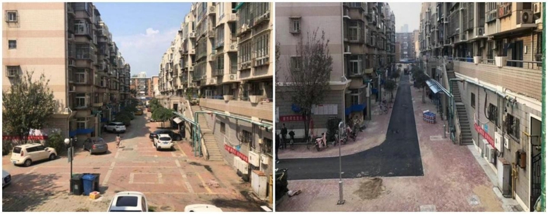 圖一:鋪設瀝青混凝土路面施工前后對比圖