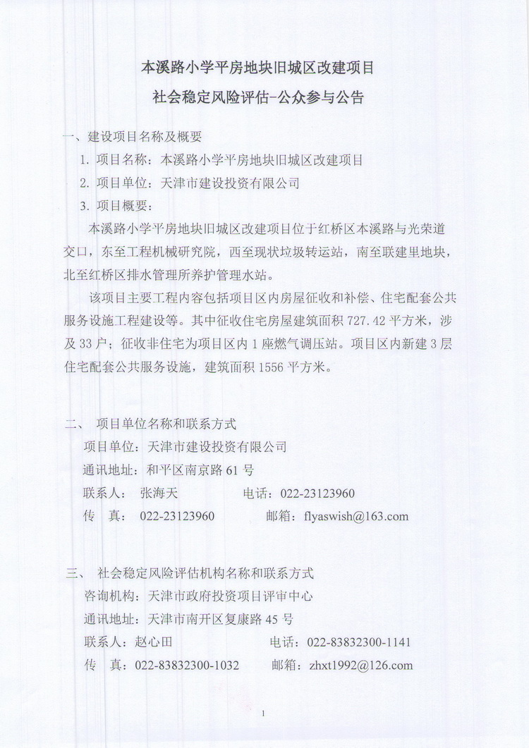 公眾參與公告:天津市濱海新區新城鎮棚戶區改造收尾項目西區還遷安置房工程社會穩定風險分析