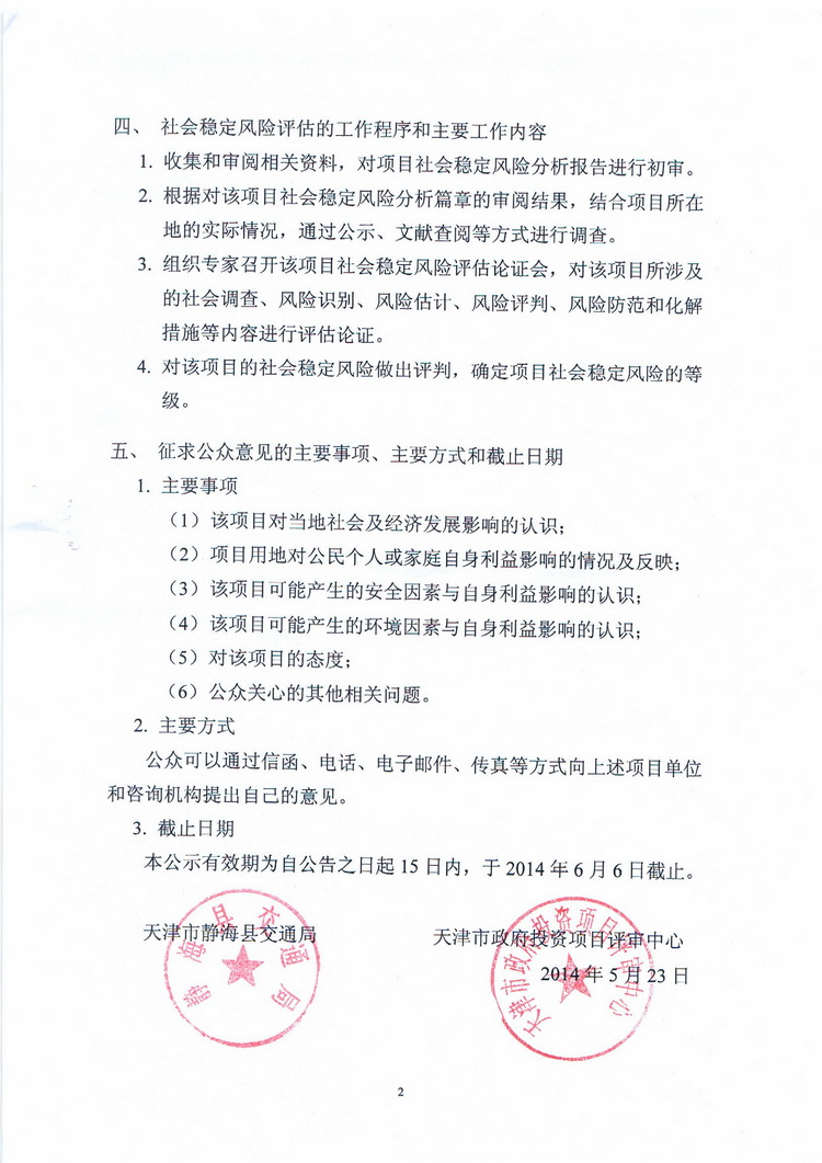 公眾參與公告:京津塘高速公路(天津段)改擴建工程社會穩定風險分析
