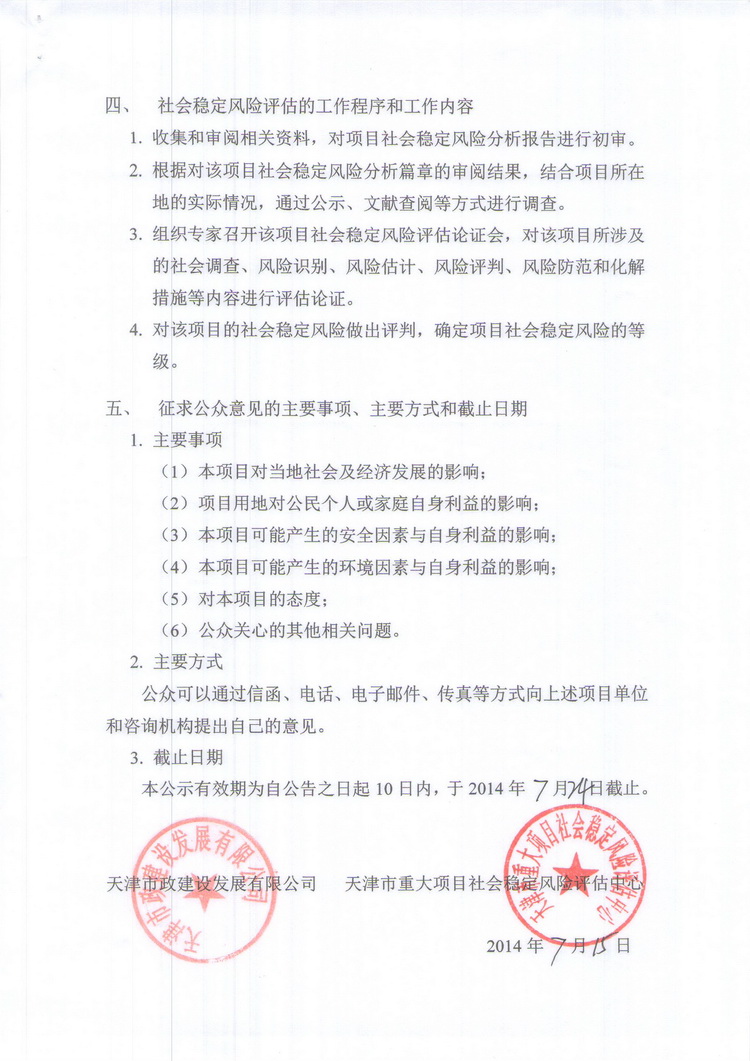 公眾參與公告:天津市濱海新區新城鎮棚戶區改造收尾項目西區還遷安置房工程社會穩定風險分析