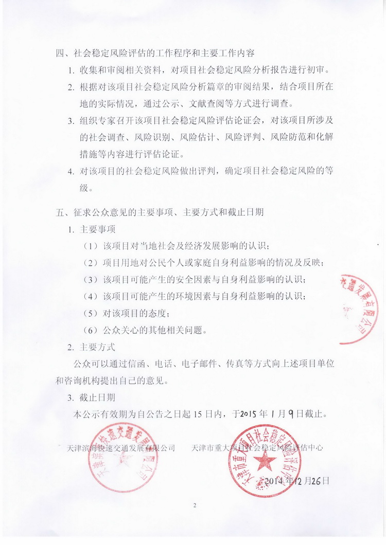 公眾參與公告:京津塘高速公路(天津段)改擴建工程社會穩定風險分析