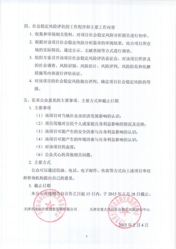 公眾參與公告:天津市濱海新區(qū)新城鎮(zhèn)棚戶區(qū)改造收尾項(xiàng)目配套基礎(chǔ)設(shè)施工程社會(huì)穩(wěn)定風(fēng)險(xiǎn)分析