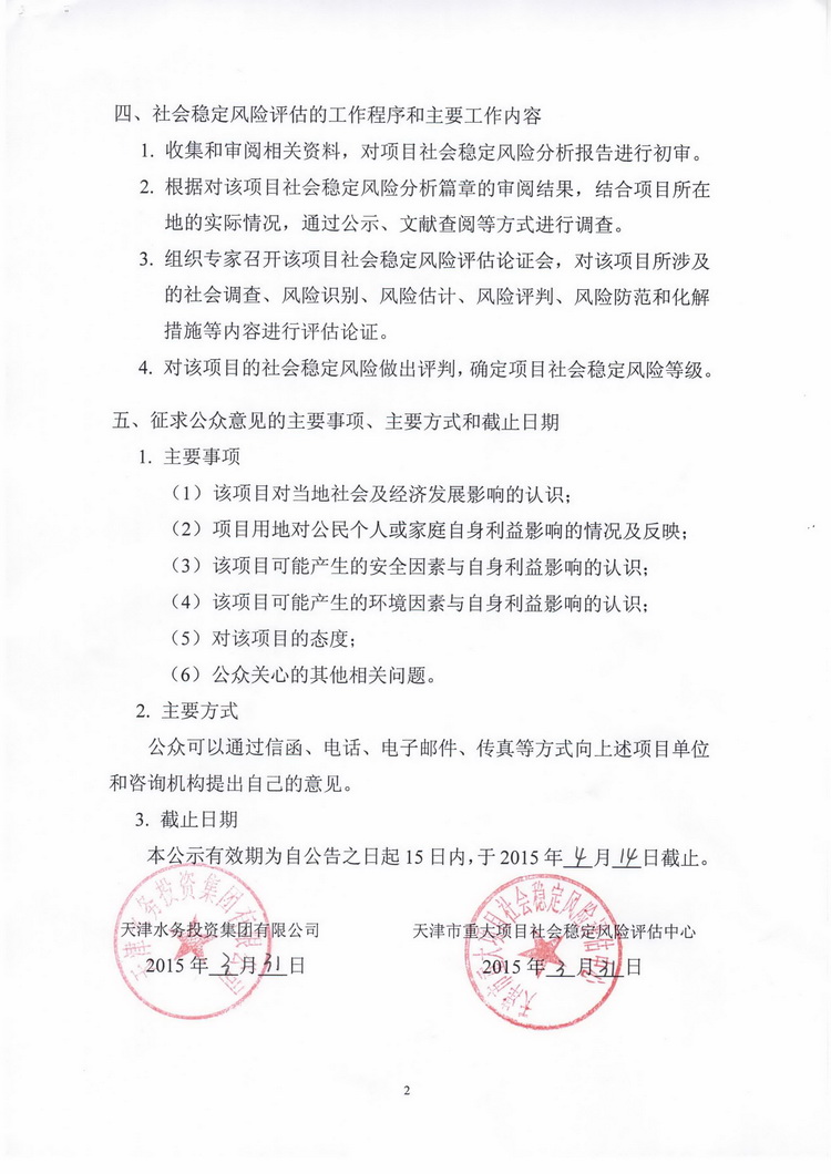 公眾參與公告:沙柳南路(津濱大道-方山道)道路及配套管線工程社會穩定風險評估