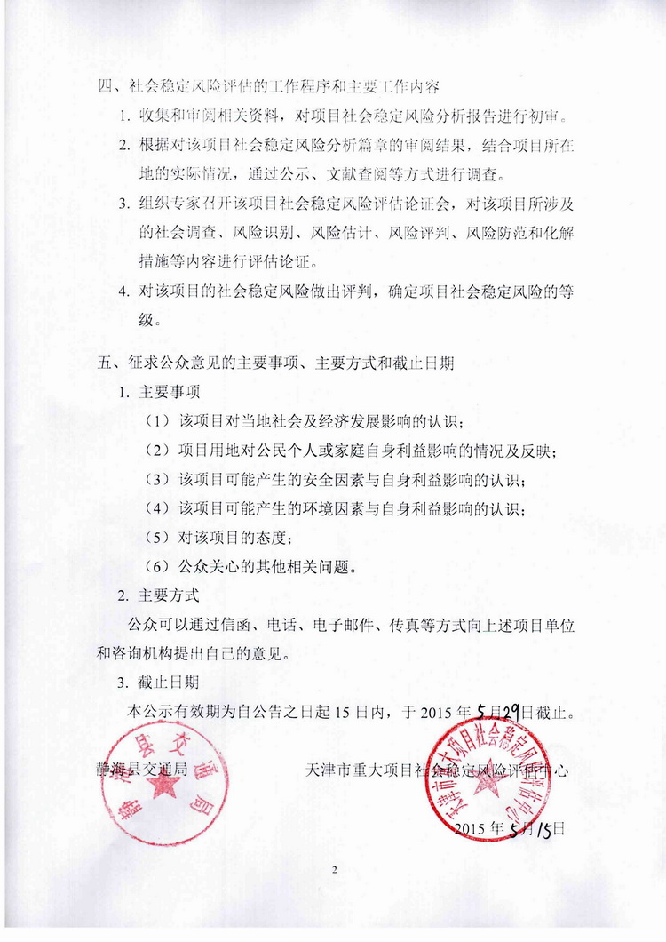 公眾參與公告:京津塘高速公路(天津段)改擴建工程社會穩定風險分析