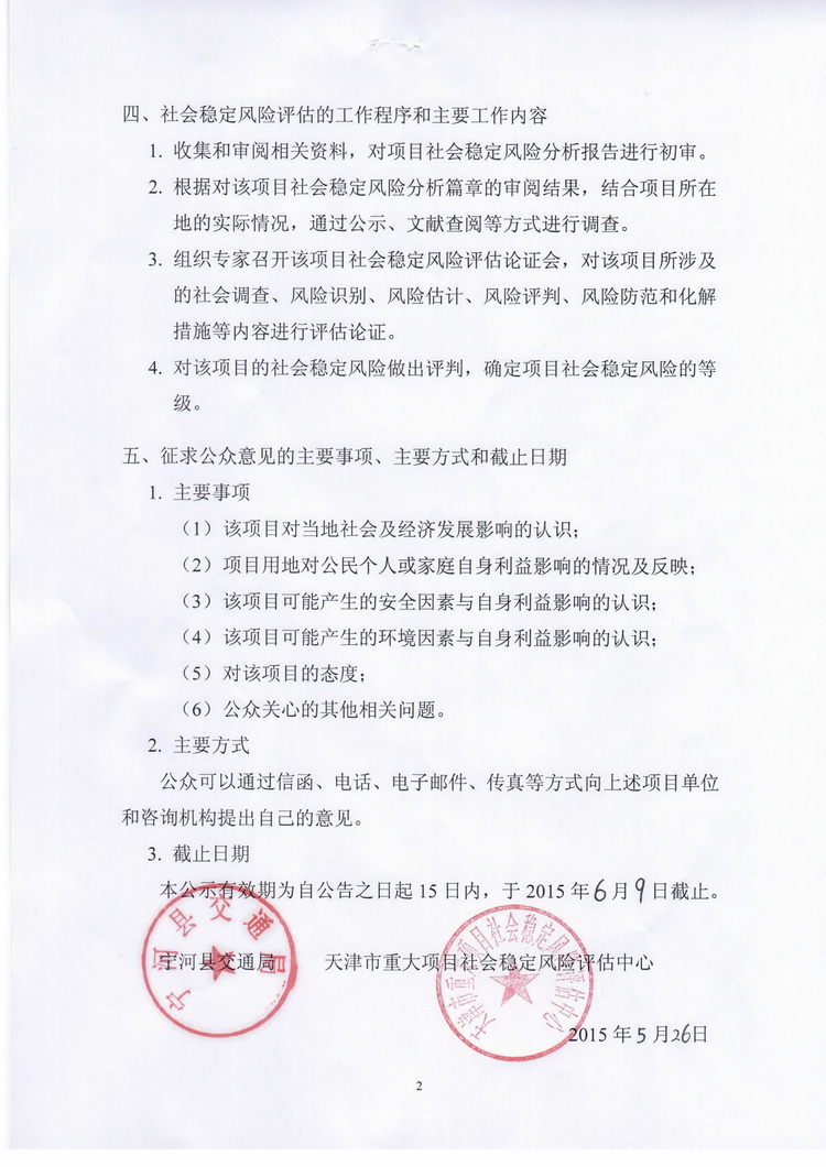 公眾參與公告:京津塘高速公路(天津段)改擴建工程社會穩定風險分析